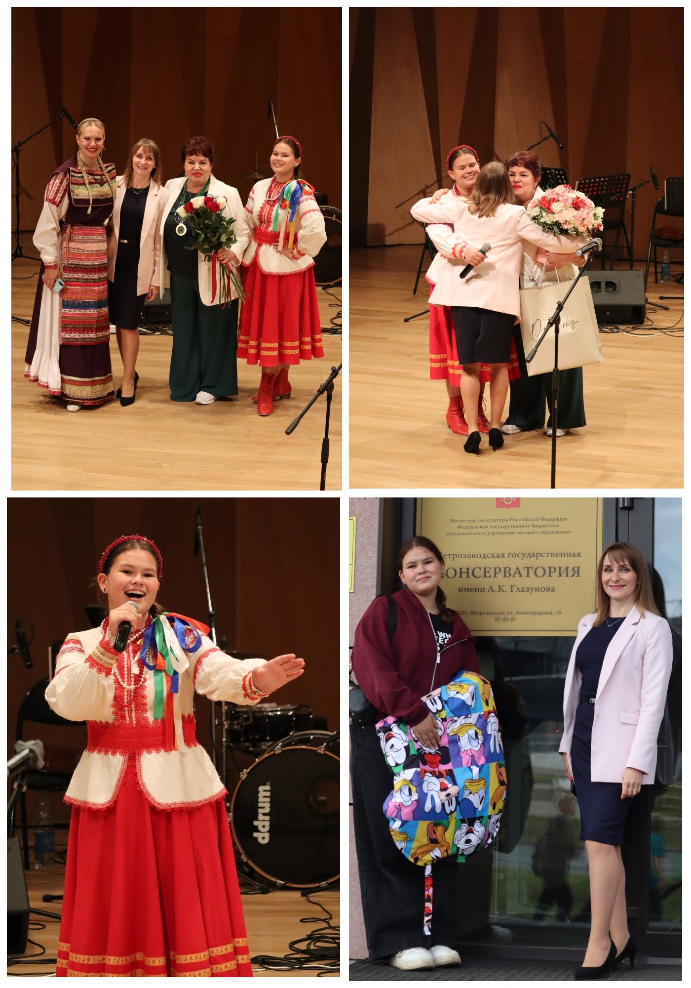 «14 сентября моей ученице Елизавете Шараповой посчастливилось выступить в Большом зале Петрозаводской государственной консерватории имени А. К. Глазунова на юбилее удивительной Людмилы Васильевны Соловьевой — заслуженного работника культуры Российской Федерации и Республики Карелия, обладателя высшей государственной награды Республики Карелия — ордена «Сампо», выдающегося преподавателя кафедры сольного народного пения колледжа им. К. Э. Раутио.