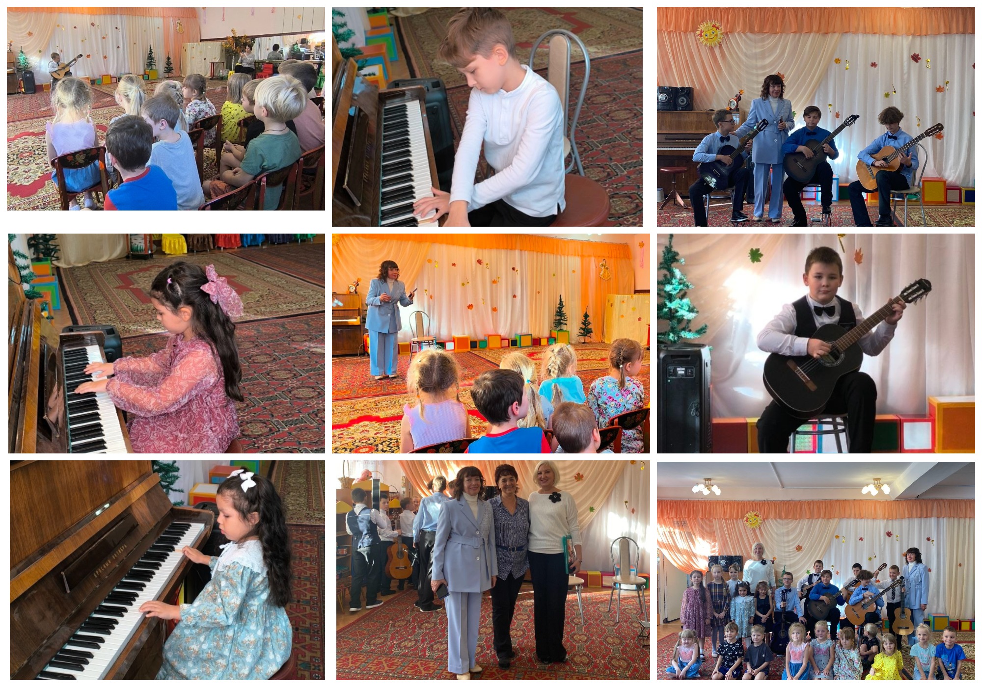 Педагоги музыкального отделения, Оксана Викторовна Зюзько (преподаватель фортепиано) и Лариса Анатольевна Сазонова (преподаватель гитары), увлекательно рассказали малышам о музыке, о композиторах и музыкальных инструментах — фортепиано и гитаре.